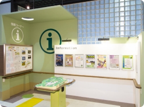 本館・宿泊館1階エントランスホールにある情報コーナーには、全景模型(一部音声案内)の設置、イベント・花の見ごろ情報や時刻表を掲示しています。