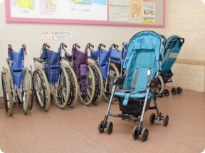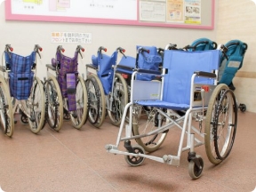 各施設のフロント受付で車いすおよび電動車いすを貸出ししています。