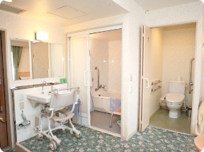 段差解消用リフトやバスリフトを設置しており、安心して入浴をお楽しみいただけます。