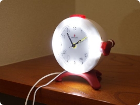 館内の緊急通報と連動して光が点滅する時計付き振動枕を貸し出ししています。