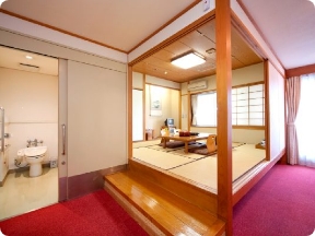 ベッド、トイレ、浴室など、車いすでのご利用を考慮した設計の客室です。広々とした空間で、快適にお過ごしいただけます。