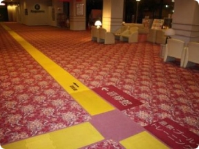 白杖や足裏の感覚で施設の経路を認識できるよう、誘導マットを設置しています。