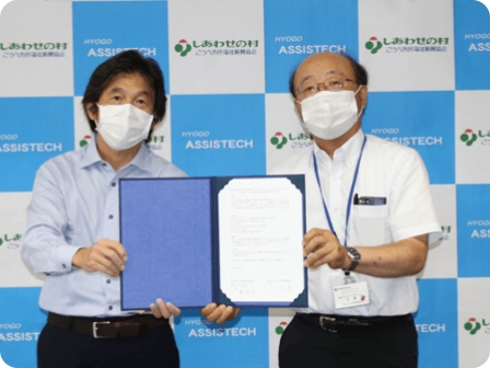 令和2年8月には、兵庫県立福祉のまちづくり研究所と連携協定を結びました。これにより、ロボットやリハビリテーションの最先端技術も活用しながら、UD事業の質をより一層高め、「誰もが笑顔になれる村」を目指しています。